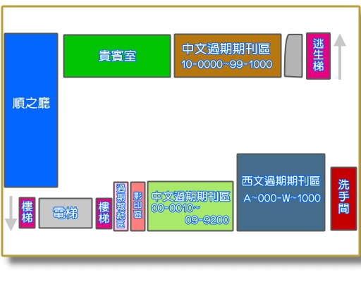 ●西文圖書區●兒童書區●過期期刊外借區●中文書區(8、9類) |
